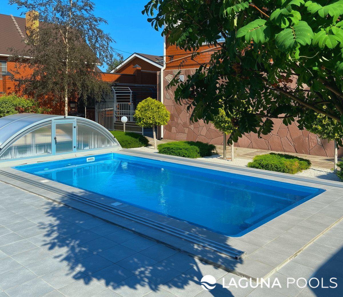 Прямоугольный композитный бассейн с сдвижным павильоном