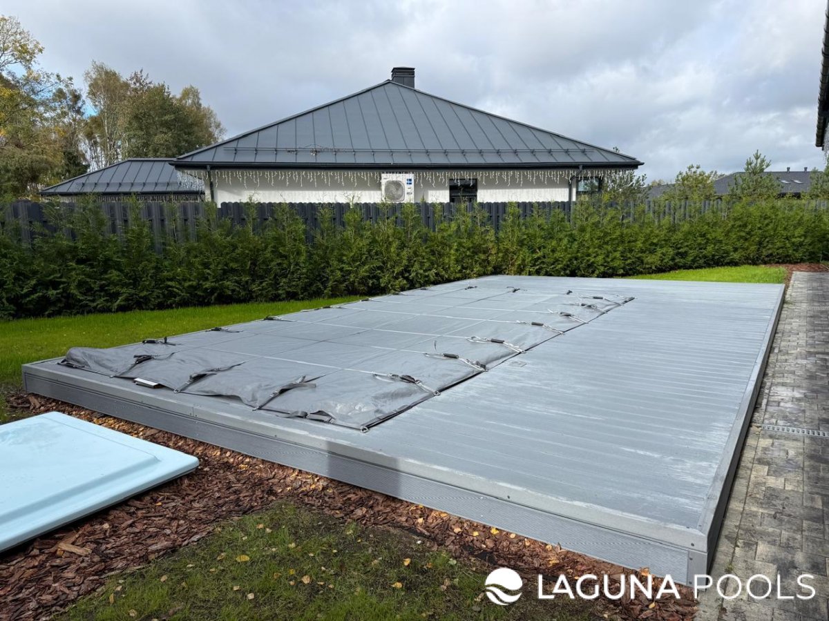 Уличный бассейн с защитным покрытием и террасной доской